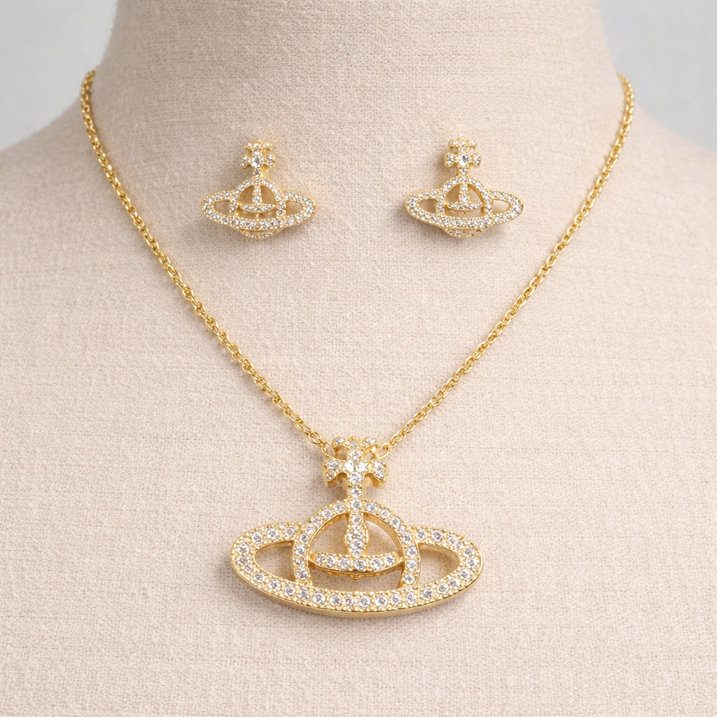 Sublime ensemble collier et boucles d'oreilles en or avec pierres étincelantes. Idéal pour les soirées élégantes. Un design raffiné qui attire tous les regards.