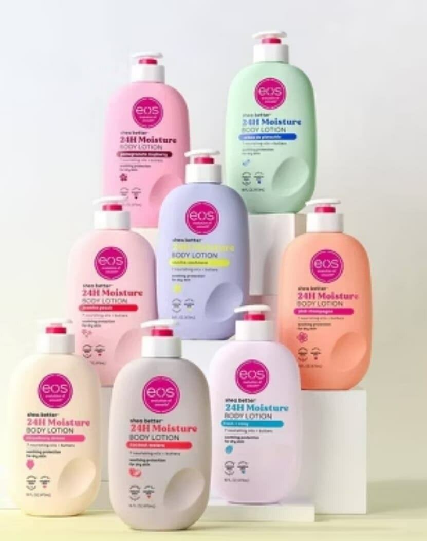 Experience deep hydration with EOS 24H Moisture Body Lotion, perfect for daily use. Infused with natural ingredients, it softens and smooths the skin, leaving it feeling fresh and rejuvenated. Ideal for all skin types, this lotion absorbs quickly, providing nourishment and moisture that lasts. Whether you're looking to pamper yourself after a bath or need an everyday essential, EOS has you covered. Enjoy the airy, delightful scents and the confidence of beautifully moisturized skin.