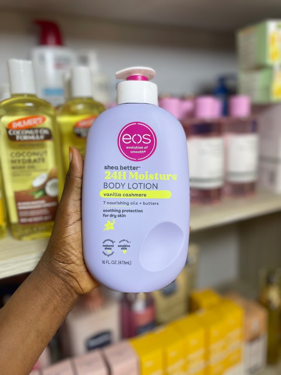 Découvrez la lotion hydratante 24H de EOS, enrichie d'huiles nourrissantes et de beurres. Parfaite pour une protection apaisante contre la sécheresse de la peau, en particulier pour les peaux sèches. Disponible en Vanilla Cashmere et Jasmine Peach, idéale pour une peau douce et parfumée toute la journée. Convient pour un usage quotidien.