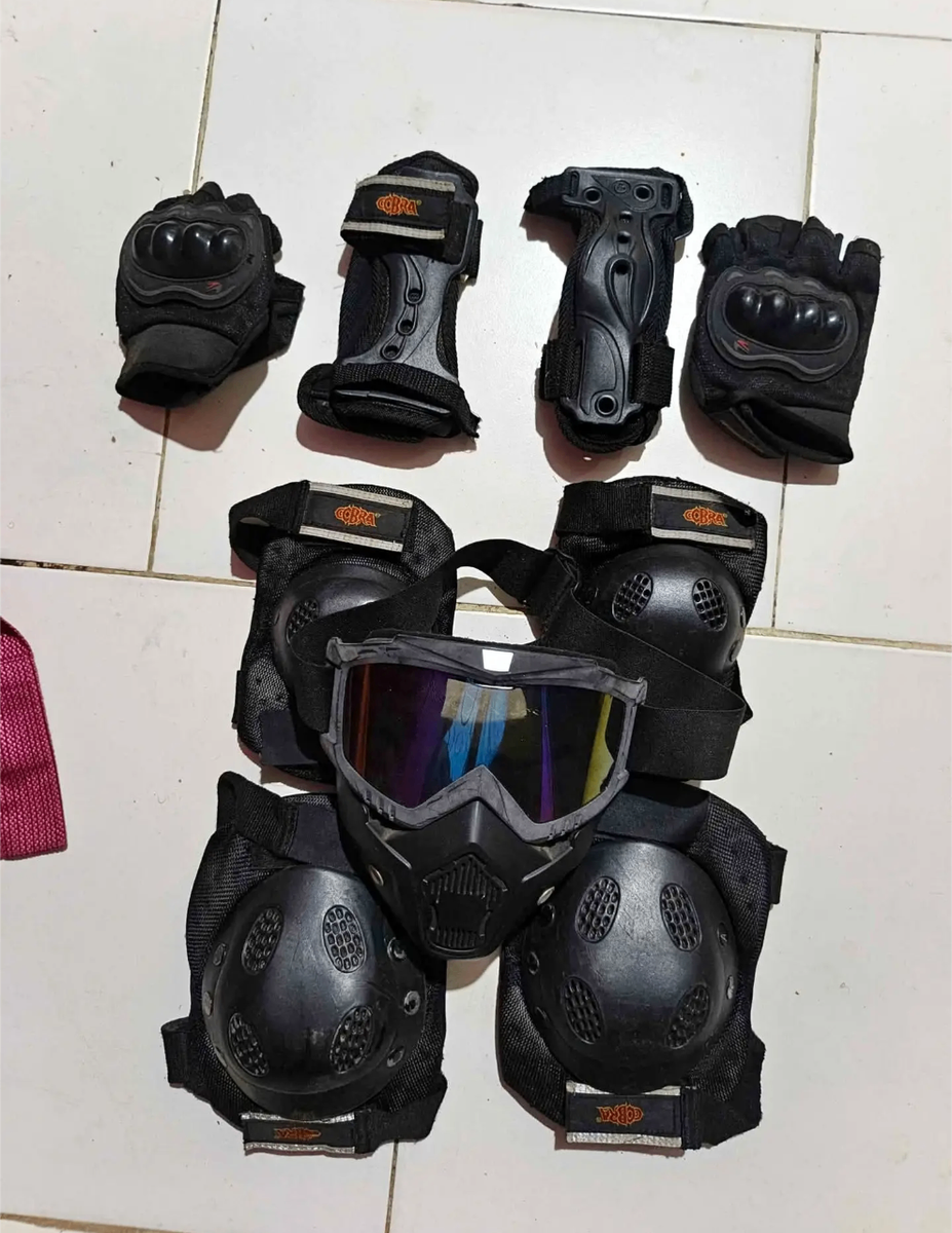 Assurez votre sécurité avec cet ensemble complet d'équipement de protection comprenant genouillères, coudières, protège-poignets et lunettes. Idéal pour le roller, le VTT, et autres sports extrêmes. Conception robuste pour une protection maximale.