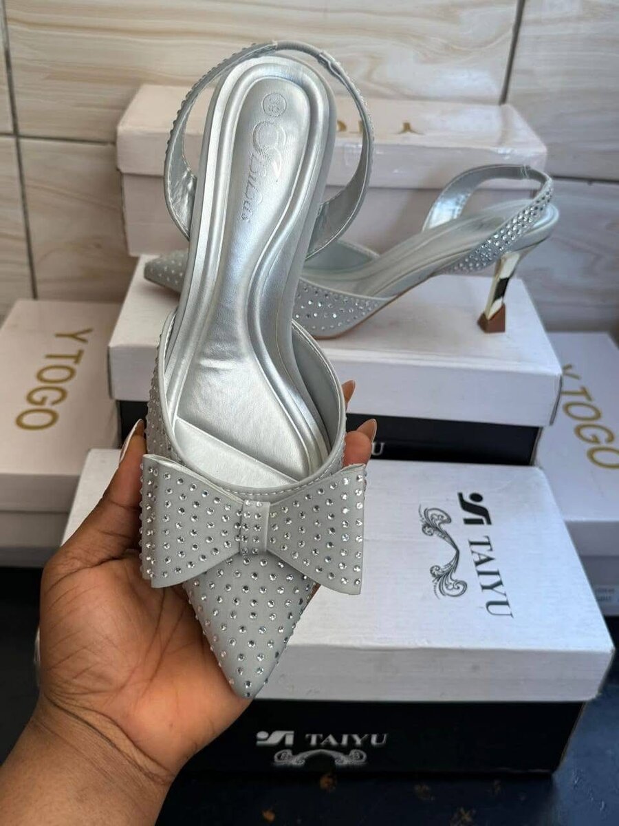 Craquez pour ces escarpins argentés ornés de strass et d'un nœud glamour. Parfaits pour une soirée ou un mariage, ils ajoutent une touche sophistiquée à votre tenue. Confortables et chic, ces chaussures sont le choix idéal pour briller en toute occasion.
