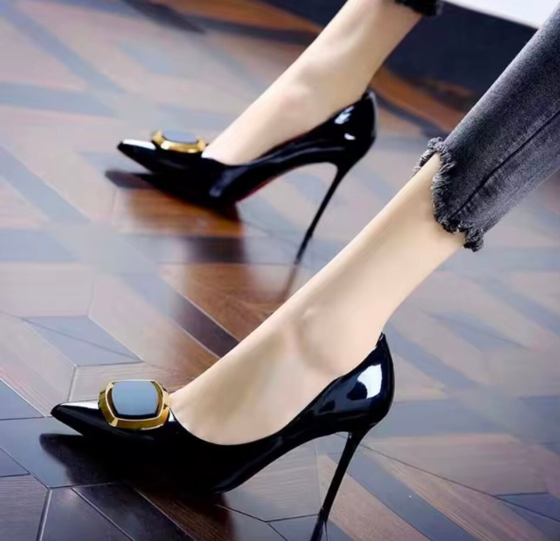 Élevez votre style avec ces escarpins noirs à talons hauts et détails dorés. Parfaits pour une soirée ou un événement spécial, ils ajoutent une touche de sophistication à n'importe quelle tenue. Conçus pour un confort optimal et une allure chic, ces chaussures sont l'ajout parfait pour votre garde-robe. Idéal pour les occasions formelles.