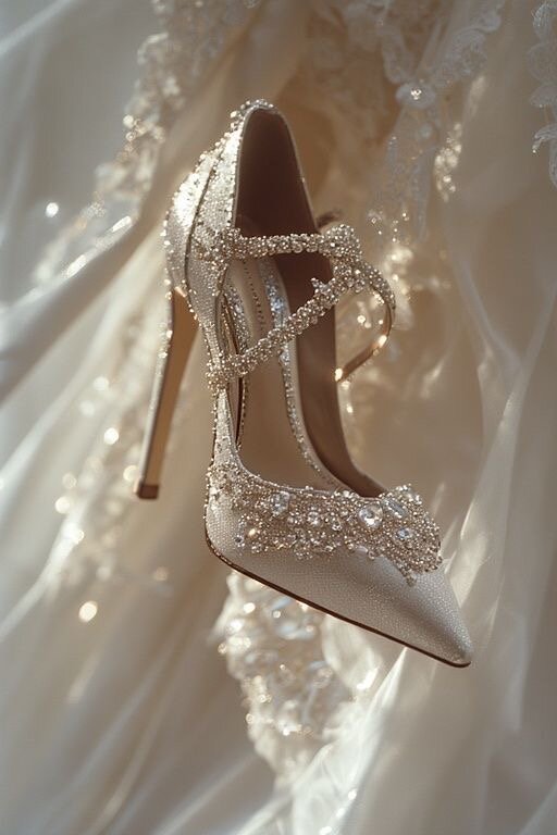Ces escarpins de mariée raffinés ajoutent une touche d'élégance à votre jour spécial. Ornés de perles scintillantes, ils se marient parfaitement avec une robe de mariée classique. Avec leur design confortable, ils assurent une allure gracieuse tout au long de la journée. Idéal pour des mariages en intérieur ou en extérieur, ces escarpins sont le choix parfait pour la mariée moderne.