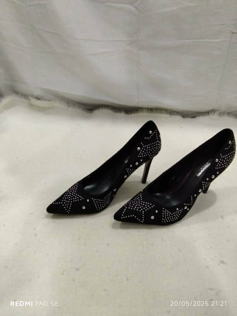 Ajoutez une touche de glamour à votre tenue avec ces escarpins noirs ornés de strass étincelants. Parfaits pour les soirées et les occasions spéciales, ils offrent confort et style toute la nuit. Conçus avec un talon haut et un design moderne, ces escarpins sont un incontournable pour toute garde-robe.