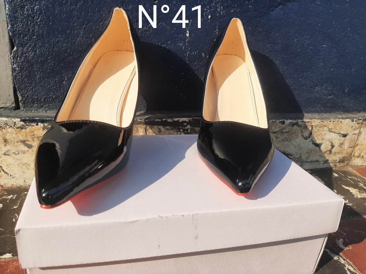 Découvrez ces magnifiques escarpins en cuir vernis noir, idéals pour sublimer vos tenues de soirée ou professionnelles. Confortables et raffinés, ils ajoutent une touche de glamour à chaque pas. Parfaits pour une allure élégante et confiante. Pointure 41.
