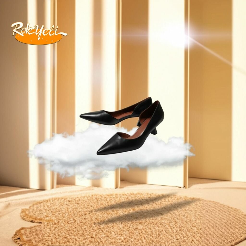 Escarpins en cuir véritable, bout pointu a petit talon unique.