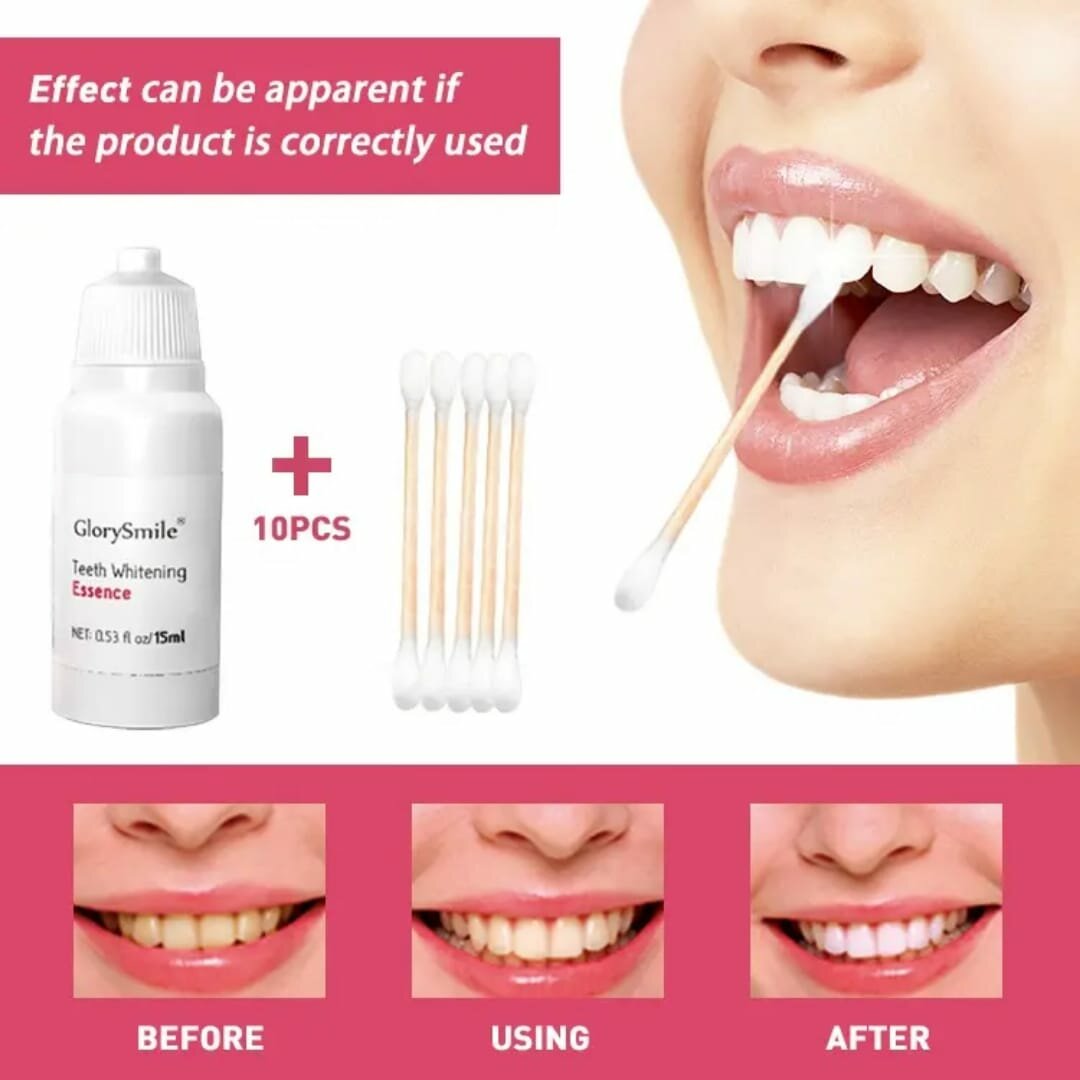 Obtenez un sourire éclatant avec l'Essence de Blanchiment Dentaire GlorySmile. Facile à appliquer, il élimine les taches efficacement. Idéal pour une utilisation quotidienne, il vous donne une confiance renouvelée. Comprend 10 applicateurs.