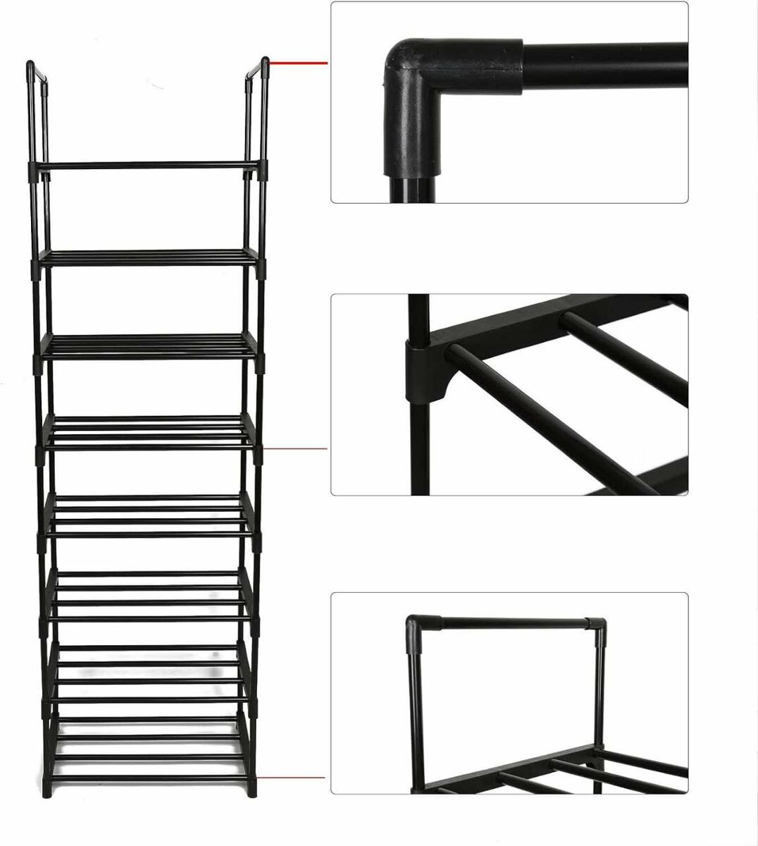 Optimisez votre espace avec cette étagère à chaussures empilable. Fabriquée en tubes de fer avec connecteurs en plastique de haute qualité, elle est robuste et facile à assembler. Idéale pour ranger jusqu'à 30 paires de chaussures dans une entrée ou un placard. Parfaite pour garder votre espace ordonné et élégant.