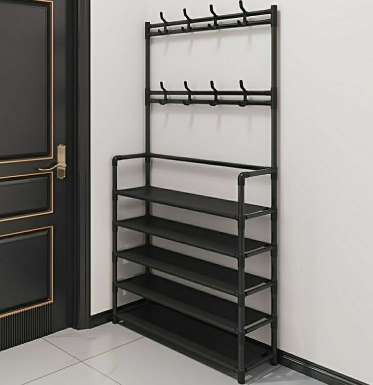 Optimisez votre espace d'entrée avec cette étagère à chaussures multi-niveaux et son portemanteau intégré. Solide et fonctionnelle, elle offre une solution de rangement idéale pour conserver l'ordre et l'esthétique de votre maison. Parfaite pour les appartements modernes et les maisons familiales.