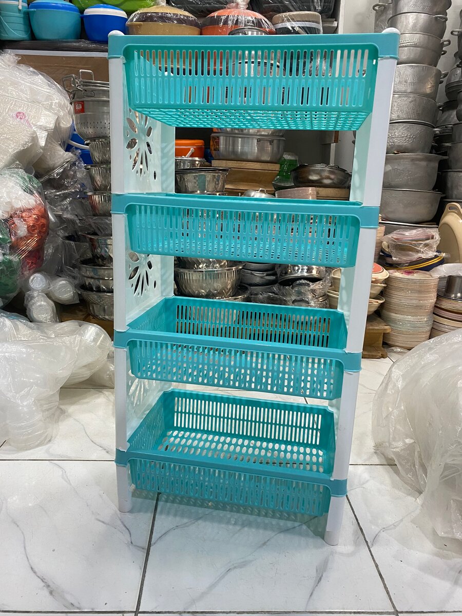 Organisez votre cuisine ou salle de bain avec cette étagère à paniers empilables. Avec 4 niveaux, elle offre un rangement spacieux et facile d'accès pour vos produits quotidiens. Parfaite pour les accessoires de cuisine, les produits de toilette ou les jouets des enfants. Solide et durable, cette étagère se monte sans outils, facilitant son installation partout dans votre maison.