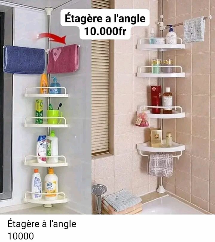 Étagère d'angle pour salle de bain pour ranger les produits de soins et les serviettes. Installation facile, design compact et robuste.