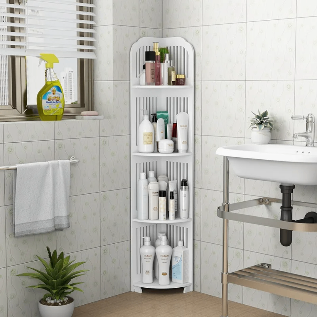 Optimisez votre espace avec cette étagère d'angle de salle de bain moderne. Idéale pour ranger vos produits essentiels de beauté et d'hygiène. Fabriquée en matériaux durables, elle s'intègre parfaitement dans n'importe quel décor. Parfaite pour les salles de bain étroites. Facile à assembler et à nettoyer.