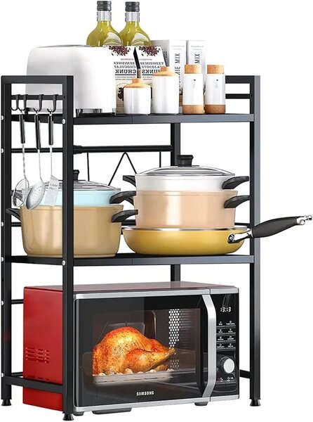 Étagère à micro-ondes ajustable jusqu'à 60cm 2 niveaux