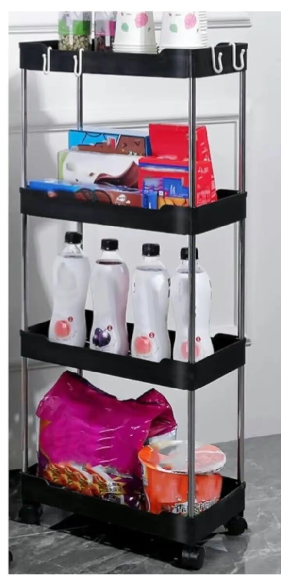 Optimisez votre espace avec cette étagère de rangement à roulettes. Idéale pour la cuisine ou la salle de bain, elle offre quatre niveaux pour organiser facilement vos produits. Sa conception mince et robuste s'adapte parfaitement aux petits espaces. Facile à déplacer grâce à ses roulettes pratiques.