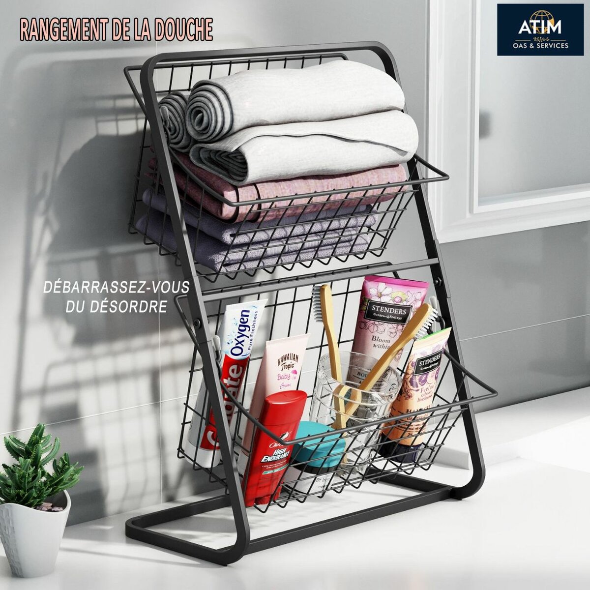 Optimisez votre salle de bain avec cette étagère de rangement en métal élégante et pratique.