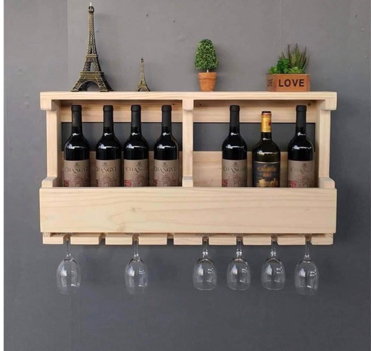 Organisez votre collection avec cette élégante étagère murale en bois. Parfaite pour stocker des bouteilles de vin et suspendre des verres. Ajoutez une touche rustique à votre décor tout en gardant vos essentiels à portée de main. Idéale pour la cuisine ou le salon, c'est l'accessoire pratique et esthétique par excellence.