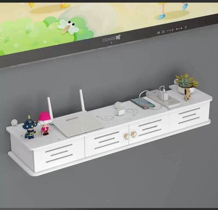 Élégante étagère murale blanche idéale pour organiser vos appareils multimédia et décorer votre salon. Avec sa conception moderne et ses compartiments fermés, elle offre une solution pratique pour ranger un routeur, une console ou des objets déco. Parfaite pour un espace contemporain, elle optimise chaque centimètre de votre mur.