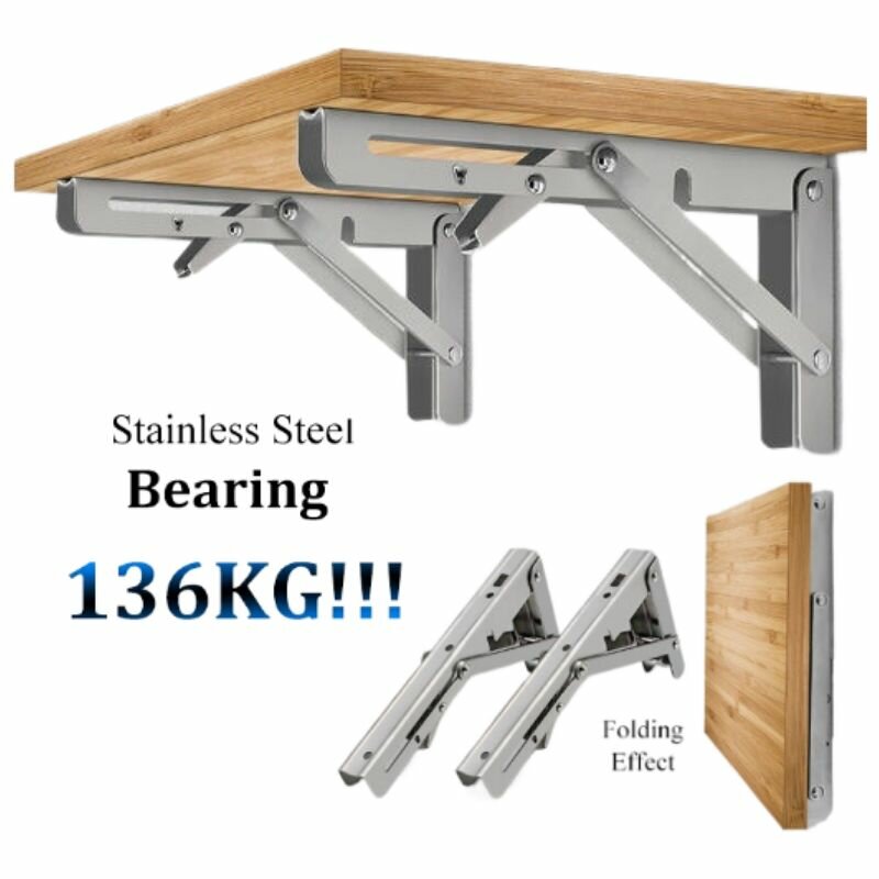 Étagère murale pliante robuste en acier inoxydable pour une utilisation polyvalente. Facile à installer et ajustable, elle permet de gagner de l'espace tout en supportant jusqu'à 136 kg. Idéale pour la cuisine, le bureau ou la maison.