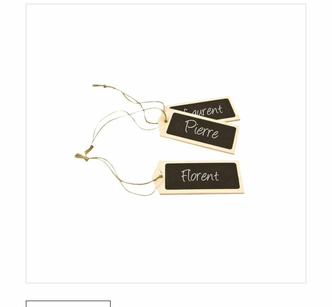 Étiquettes en ardoise personnalisables parfaites pour organiser vos événements ou décorer vos cadeaux. Faciles à accrocher, elles ajoutent une touche personnelle avec les noms de vos invités. Idéales pour mariages, anniversaires ou fêtes.