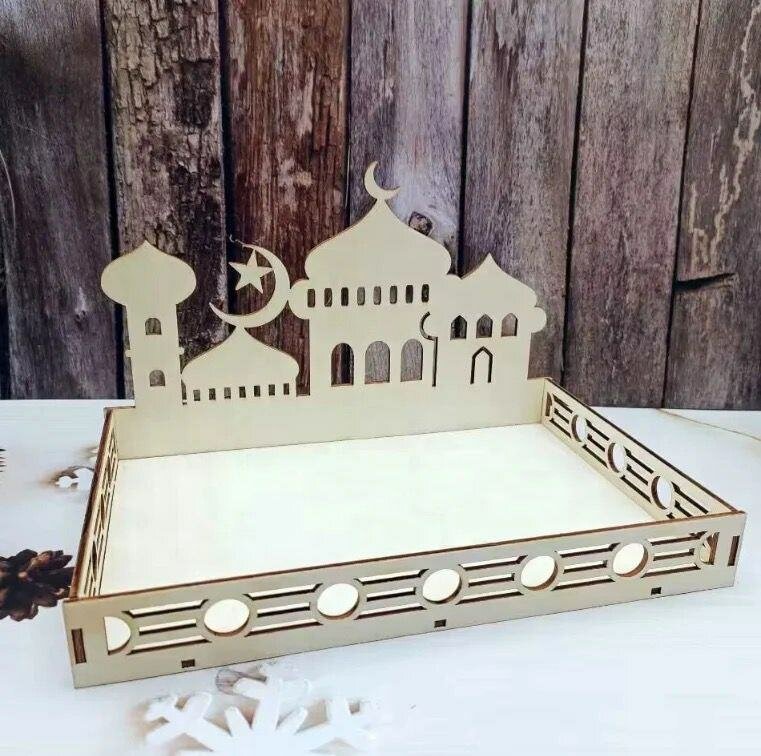 Eid Mubarak lune étoiles plateau en bois ornements