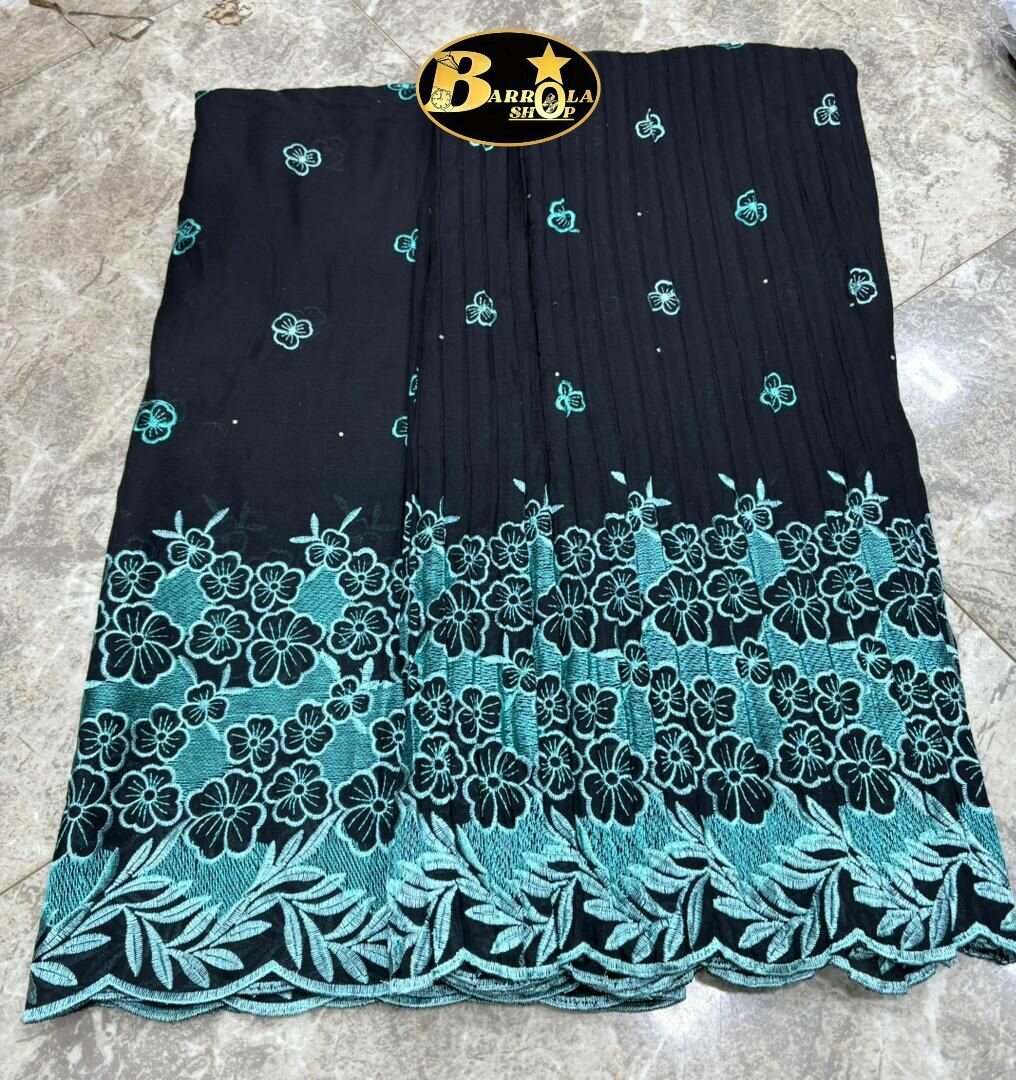 Élégante étole noire avec broderie florale turquoise. Idéale pour ajouter une touche féminine à toutes vos tenues. Parfaite pour les soirées et événements spéciaux.