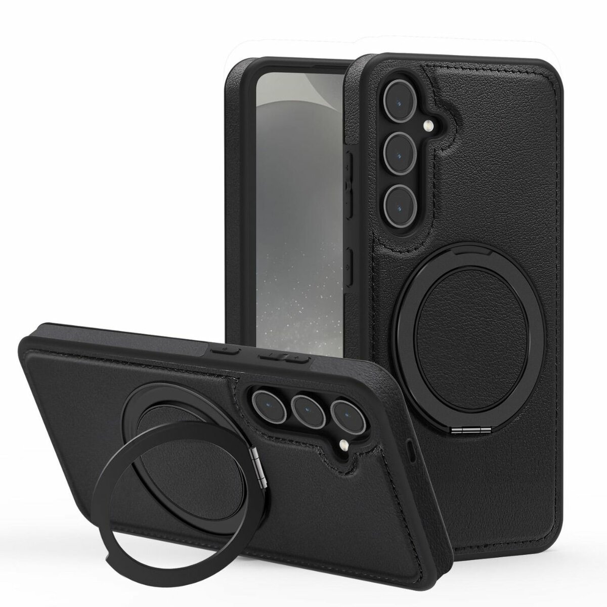Étui de protection luxueux avec support rotatif à 360° pour Galaxy S25 - Noir