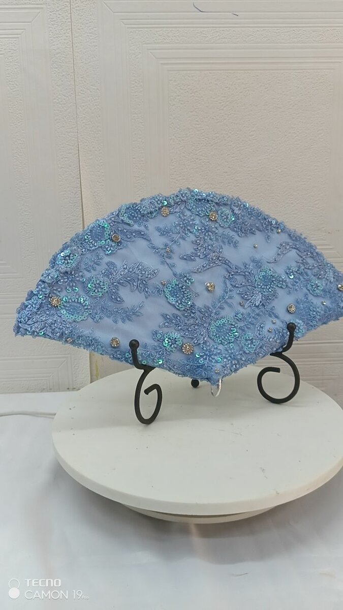 Élevez votre style avec cet élégant éventail en dentelle ornée de perles. Parfait pour les mariages et événements spéciaux, il offre une touche sophistiquée à votre tenue. Léger et facile à porter.