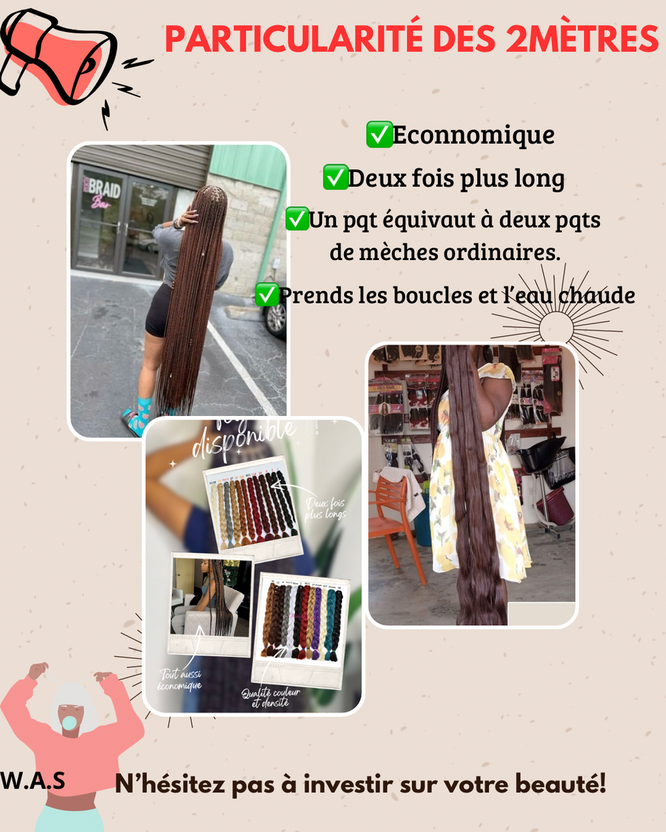 Optez pour ces fibres de cheveux ultra-longues de 2 mètres ! Économiques et deux fois plus longues, elles vous offrent un volume incomparable. Parfaites pour des boucles et résistance à l'eau chaude. Transformez votre look facilement !