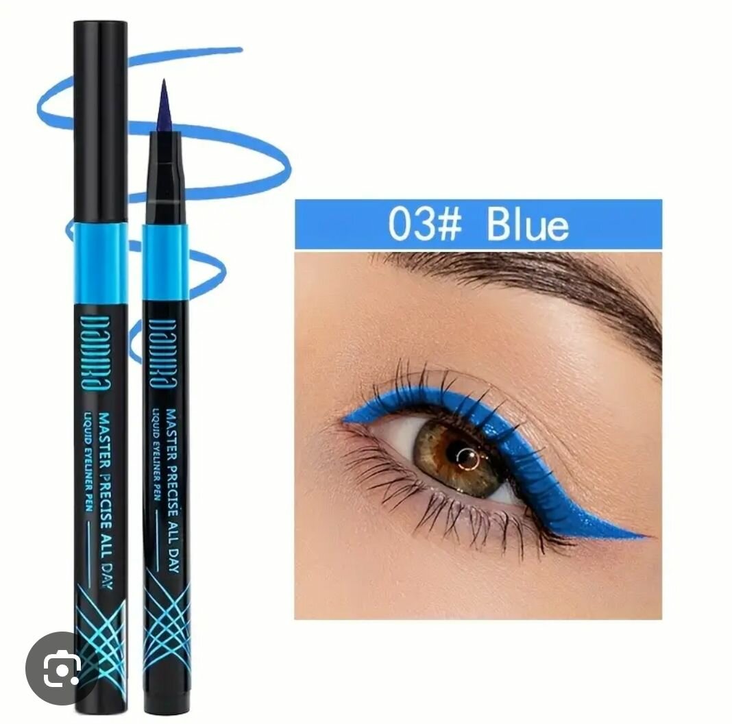 Le produit sur l'image est un eyeliner liquide de la marque USHAS, appelé "Master Precise All Day". Il s'agit d'un stylo eyeliner de couleur bleue.