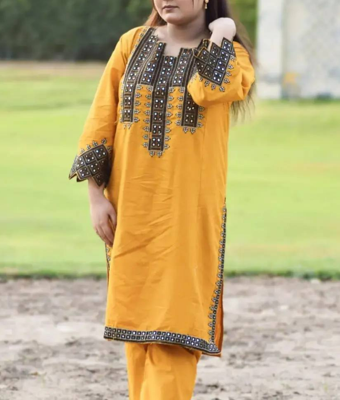 *Fancy Doria Cotton 2 pies* 9mm embroidery Standerd size Chest 20 Length 38 6 clr every design Self design stuff *Bari discount Start now*