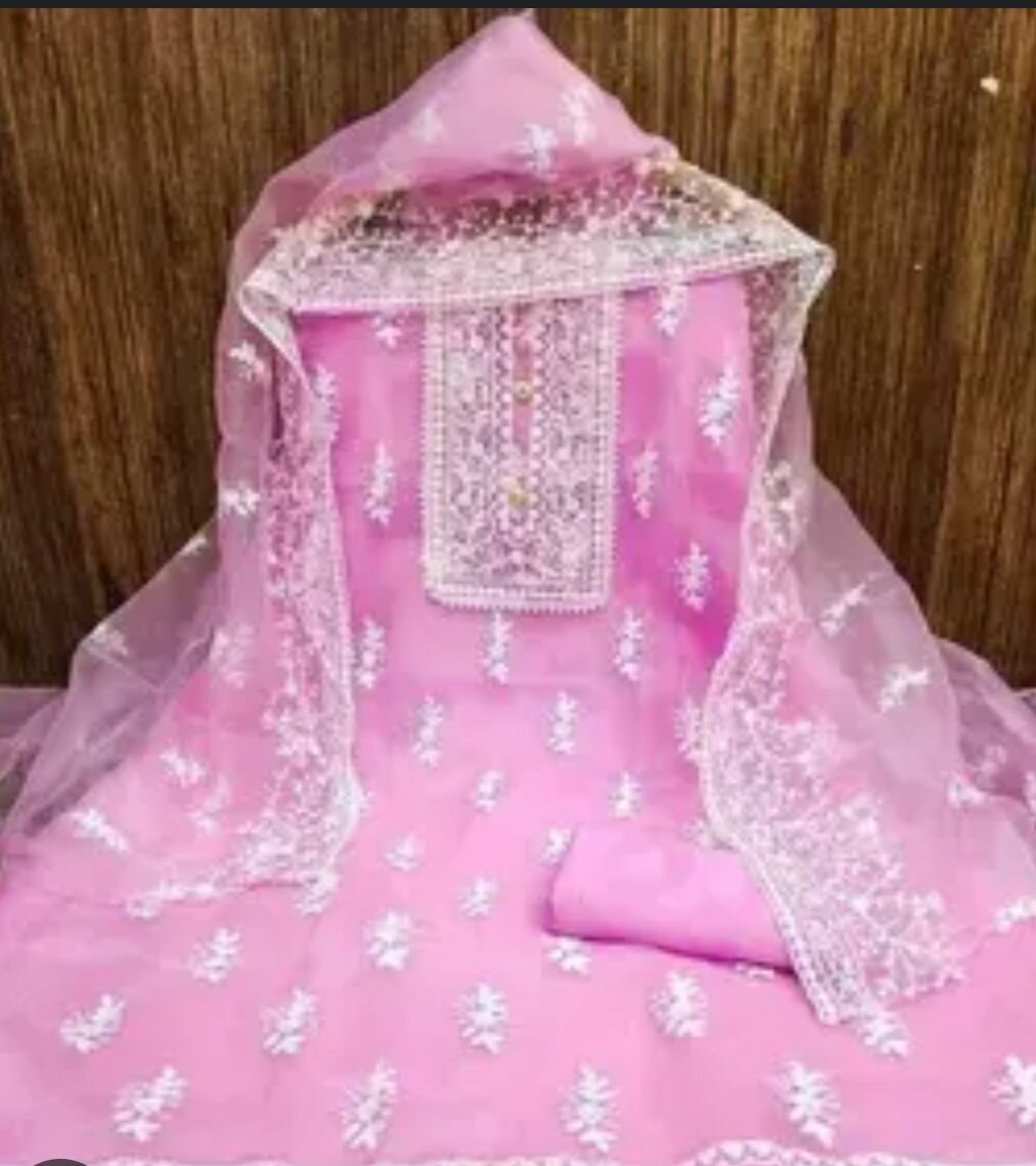 Embroidered Organza Women's Suit Set-3 Pcs in peach