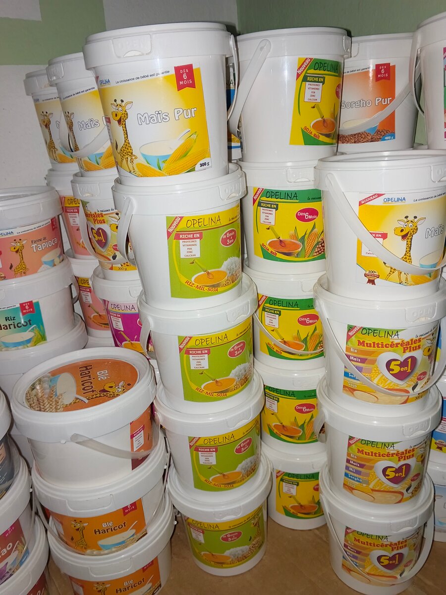 Opelina Céréales : farine de maïs ,mil,riz,sorgho, blé,tchongon, cacao, haricots de qualité supérieure pour des plats délicieux et sains. Idéal pour les nourrissons . Format pratique en seau pour une conservation optimale.
