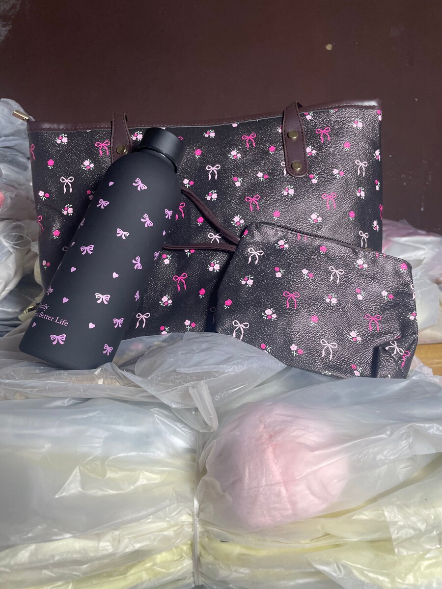 Chic and practical, this set includes a stylish tote bag, compact pouch, and matching water bottle, perfect for everyday use. Ideal for fashion-forward individuals who need both functionality and flair. Makes a great gift for any occasion.
