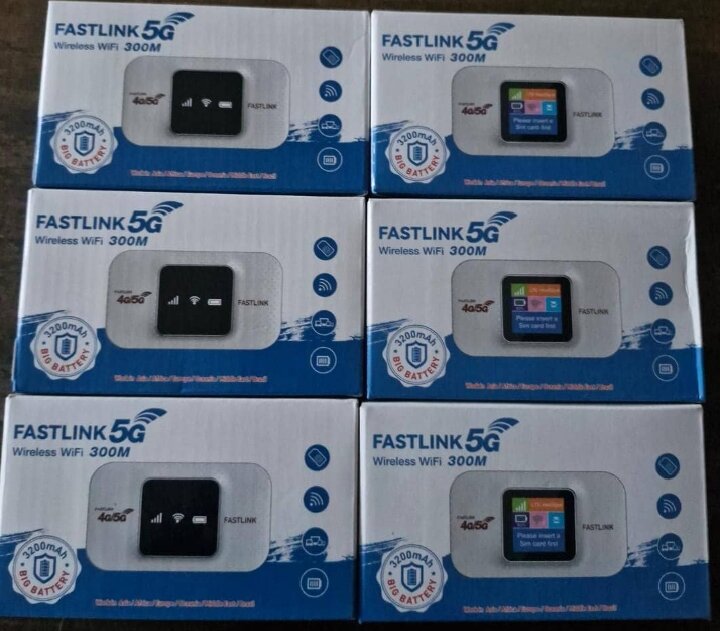 The device is a Fastlink 5G Wireless WiFi 300M, likely a portable MiFi (mobile WiFi) router. Supports high-speed 5G cellular networks. Provides WiFi connectivity with speeds up to 300Mbps.