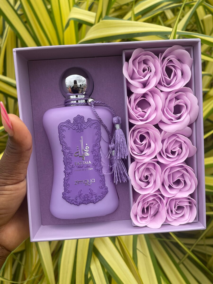 Afnan Fatima Velvet Love is a feminine and sensual perfume. Top Notes: Violet, Bergamot & Pear. Middle Notes: Rose, Lavender and Agarwood. Base Notes: Oud and Vanilla. Suitable for daytime wear.