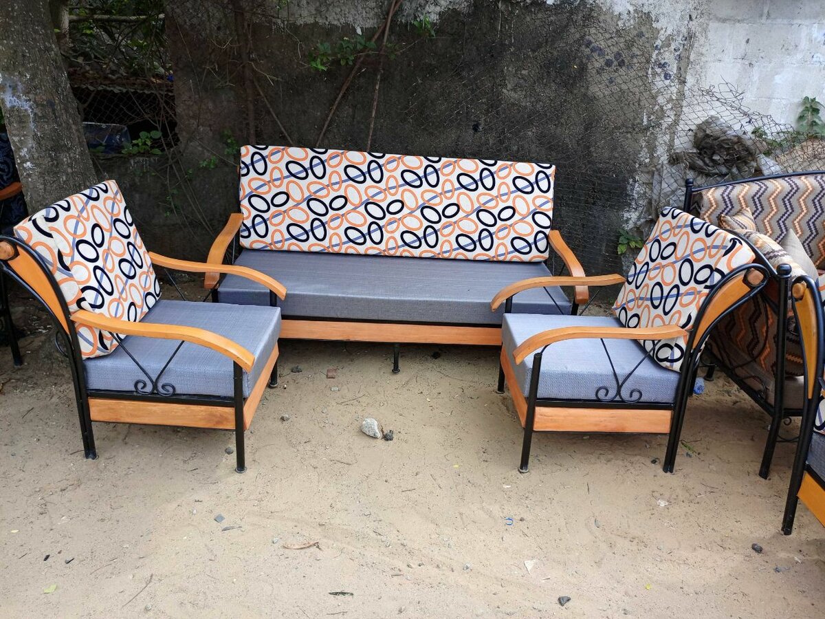 ensemble de fauteuil en fer forgé de sept places confortable résistant durable avec garantie , composé en un divan de trois places un divan de deux places deux fauteuils d'une place et la table basse