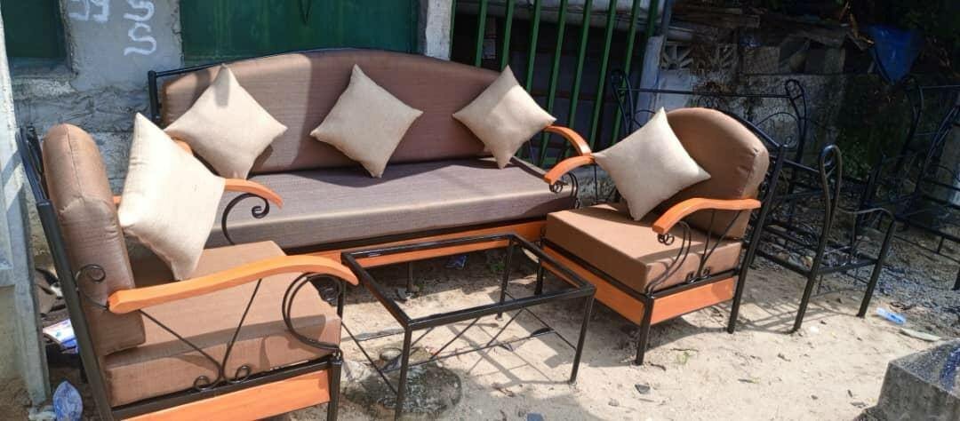 ensemble de fauteuil en fer forgé de sept places confortable résistant durable avec garantie , composé en un divan de trois places un divan de deux places deux fauteuils d'une place et la table basse