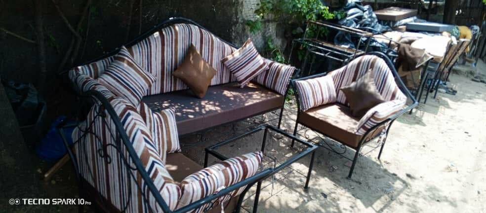 ensemble de fauteuil en fer forgé de sept places confortable résistant durable avec garantie , composé en un divan de trois places un divan de deux places deux fauteuils d'une place et la table basse