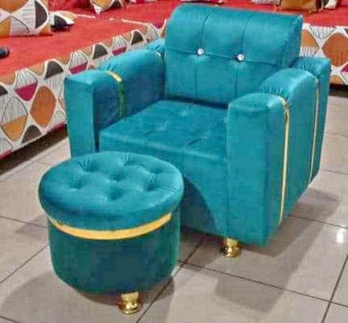 Élégant fauteuil turquoise avec tabouret assorti, idéal pour salon ou bureau. Design moderne avec finitions dorées, confort optimal grâce à son rembourrage moelleux. Parfait pour ceux qui recherchent style et confort.