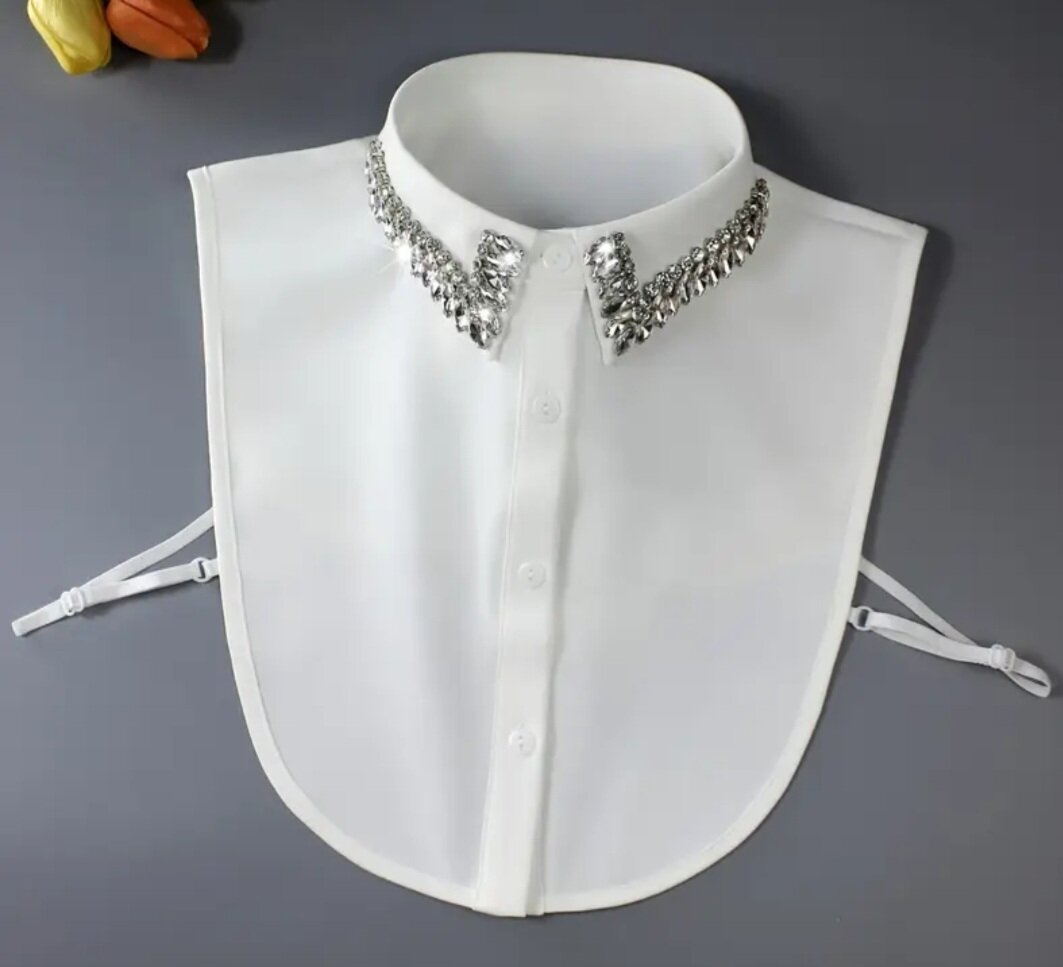Faux collier luxueux étincelant détachable avec strass pour femme. 100% polyester, lavable en machine.