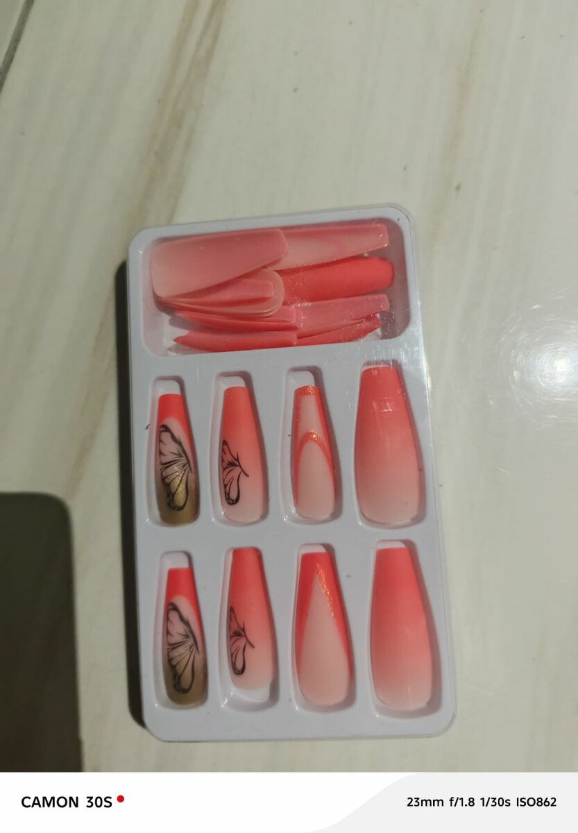 Transformez vos ongles en œuvre d'art avec ces faux ongles en dégradé corail orné de papillon. Facile à appliquer, idéal pour une manucure rapide mais élégante. Parfait pour toutes occasions !