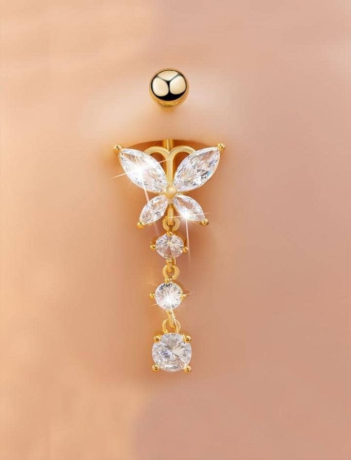 Éblouissant piercing nombril avec pendentif papillon en cristal. Idéal pour un look chic et glamour.