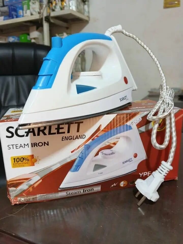 Fer à repasser Scarlett avec fonction vapeur pour un repassage facile et efficace. Idéal pour les vêtements délicats et les tissus épais.