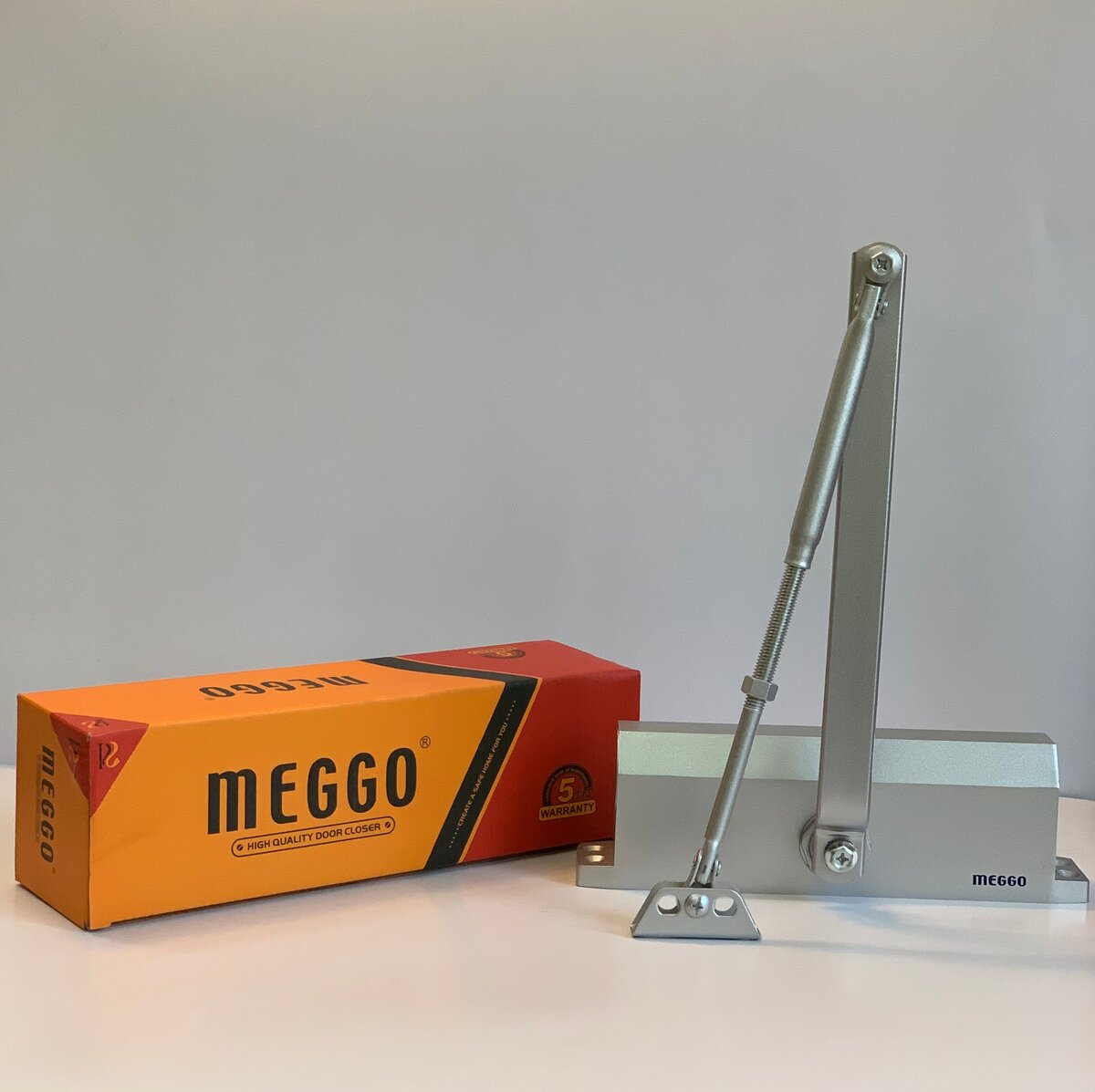 Il s'agit d'un ferme-porte hydraulique de la marque Meggo, modèle ME660. Ce type de dispositif est conçu pour fermer automatiquement et de manière contrôlée une porte après son.