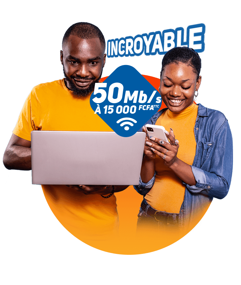 Profitez d'une connexion Internet rapide et stable partout chez vous avec notre Fibre optique et notre routeur WiFi ultra-puissant de Moov Africa. Idéal pour le streaming, le télétravail et les jeux en ligne. Facile à installer et à utiliser.