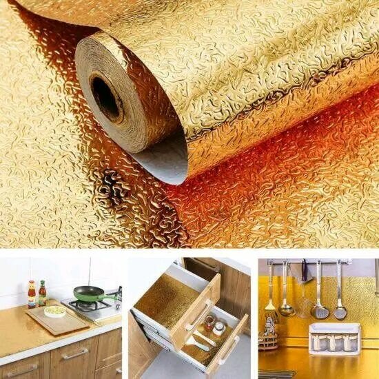PAPIER ADHÉSIF 60 CM SUR 200 CM . Idéal pour embellir la cuisine ainsi que les meubles.C'est imperméable et facile à nettoye.Il est disponible en couleur or et argent