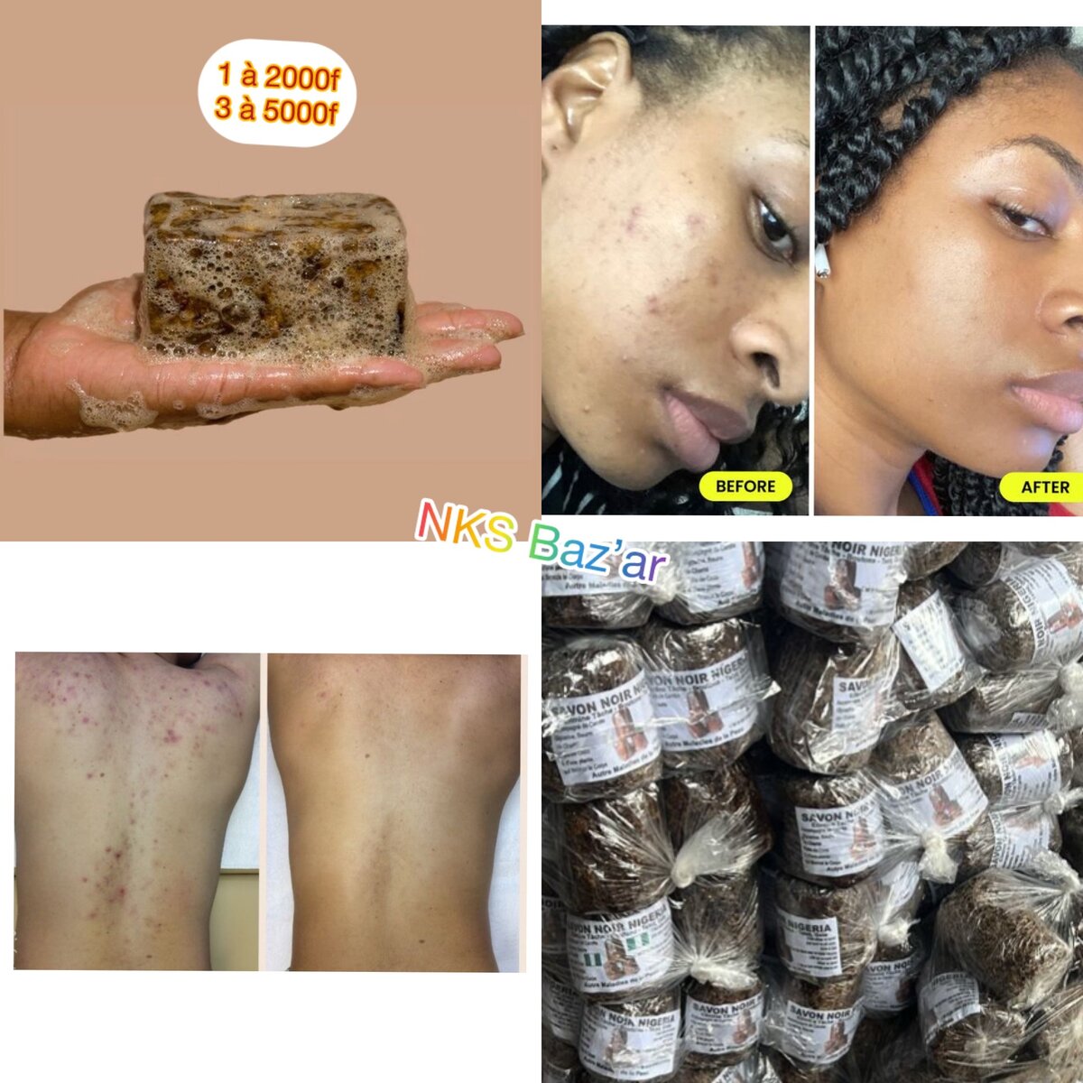 Vous voulez embellir votre peau pour un mariage ou traiter juste les imperfections ? Testez ce savon noir du Nigeria. Il traite efficacement les taches, boutons et gales pour un teint plus propre et uniforme 1 à 2000f 3 à 5000f
