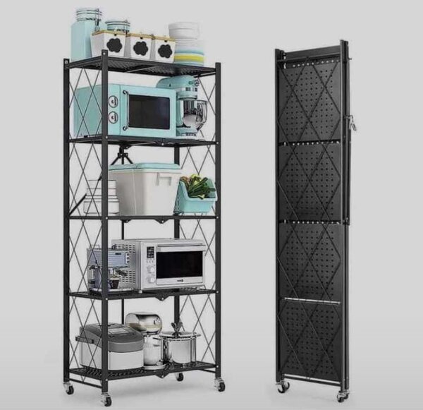 5 tier storage rack- foldable, wheels