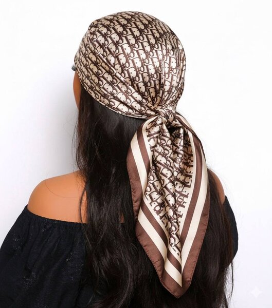 Élégant foulard en soie avec motifs dorés, parfait pour accessoiriser votre tenue. Léger et confortable, idéal pour les femmes cherchant une touche de sophistication.