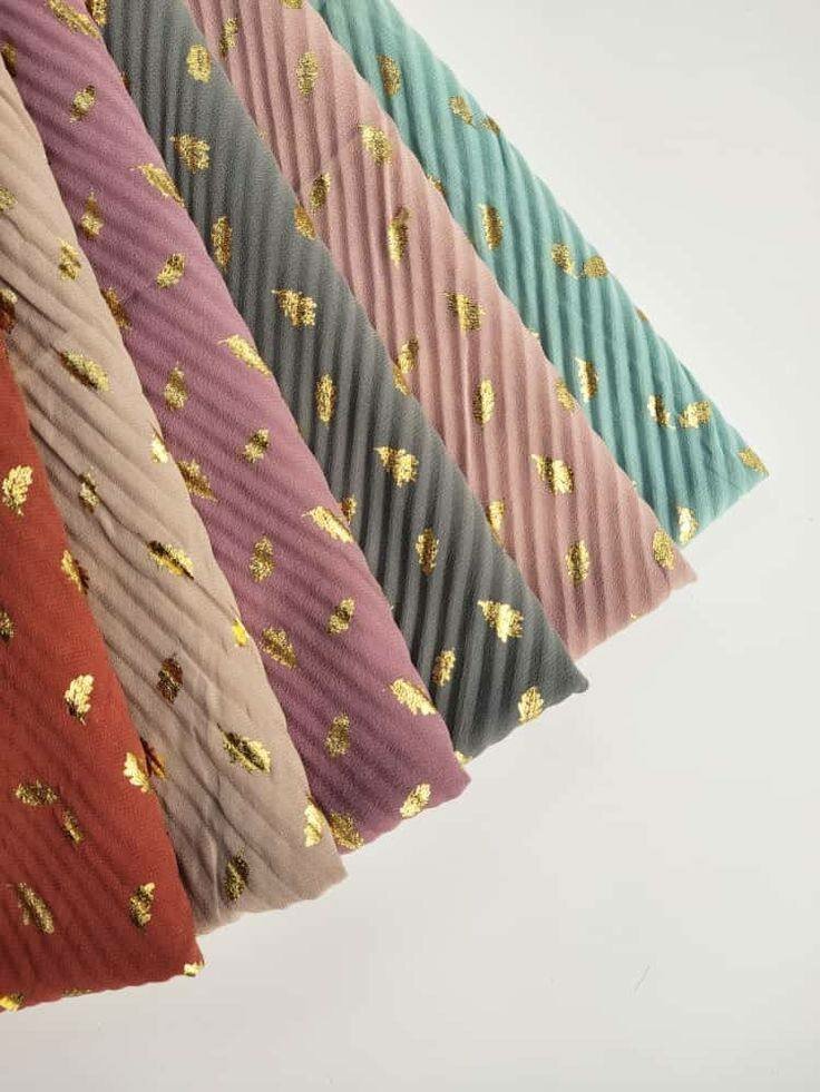 Lot de foulards doux et plissés, finition élégante avec motifs dorées. Idéal pour vos tenues, plusieurs couleurs tendance au choix. Léger, confortable et facile à nouer.